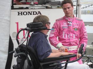 Sam discusses race strategy with his 2009 Indianapolis 500 driver Alex Lloyd.