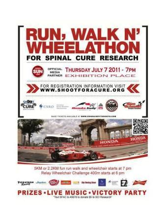 Join us at the Official Honda Indy Track (Exhibition Place) for the 3rd Annual Honda Indy Toronto 5K Run, Walk 'N Wheelathon on Thursday, July 7, 2011 in support of Sam Schmidt Paralysis Foundation and Canadian Spinal Research Organization.